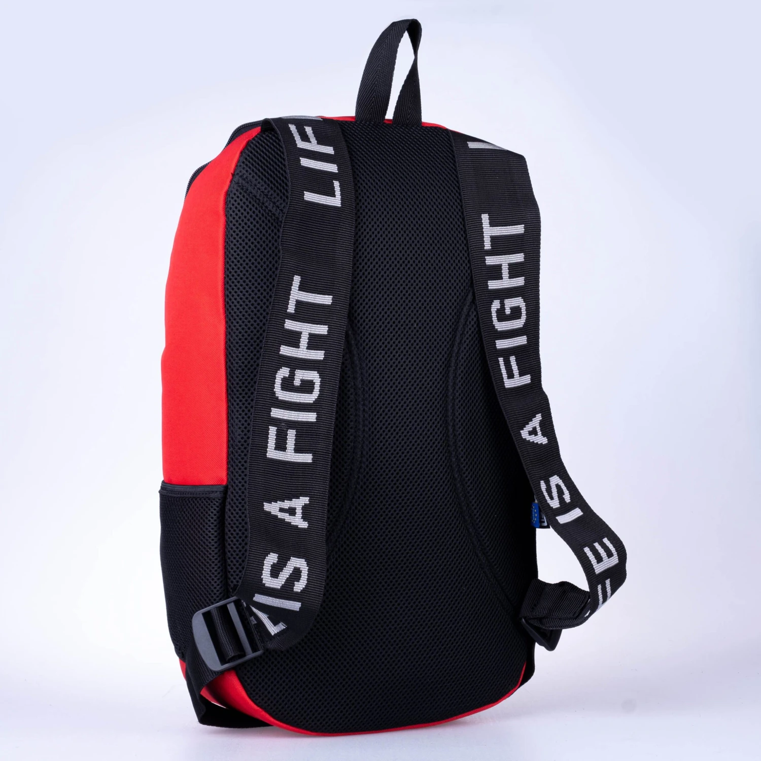 A necessity reflex element on the back of the backpack is in a form of a Fighter logo.
