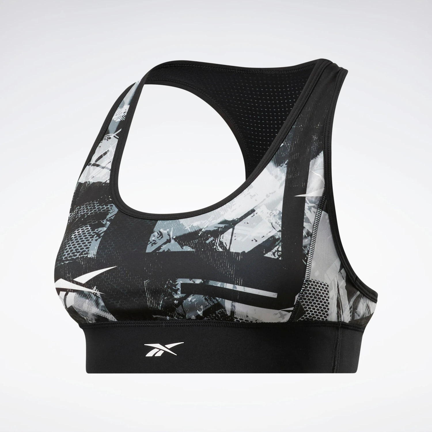 Work up a sweat in this light-support sports bra. The wide band and fitted fit keep you comfortable throughout your workout. Speedwick fabric helps you stay dry, and an allover graphic adds extra style.